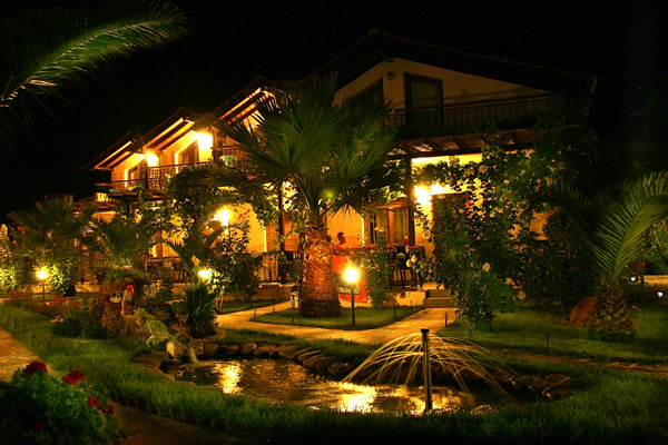 Щрихите на традиционната архитектура, срещани от посетителя, както в градината, така и в сградата, се съчетават хармонично със съвременните услуги, които предлага хотелът.